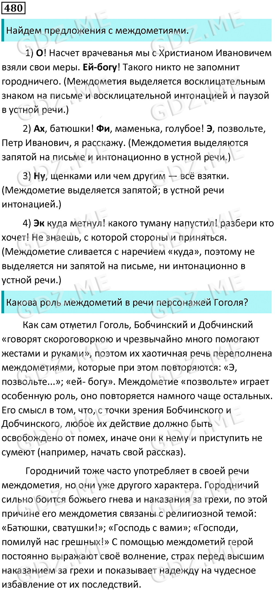 Подробный вариант решения из решебника (ГДЗ): Номер номер 480 (НОМЕРА РЕШЕНИЙ. Упражнения с 1 по 535) по предмету Русский язык, за 8 класс, авторы учебника Бархударов, Крючков, Максимов.
