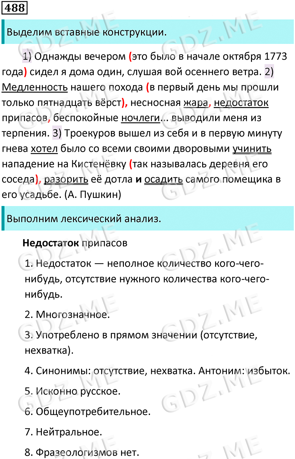 Подробный вариант решения из решебника (ГДЗ): Номер номер 488 (НОМЕРА РЕШЕНИЙ. Упражнения с 1 по 535) по предмету Русский язык, за 8 класс, авторы учебника Бархударов, Крючков, Максимов.