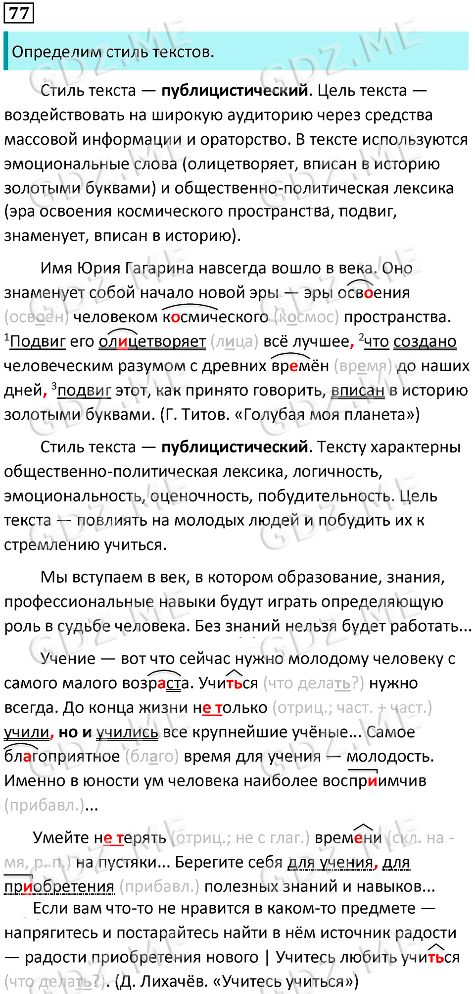 Подробный вариант решения из решебника (ГДЗ): Номер номер 77 (НОМЕРА РЕШЕНИЙ. Упражнения с 1 по 535) по предмету Русский язык, за 8 класс, авторы учебника Бархударов, Крючков, Максимов.