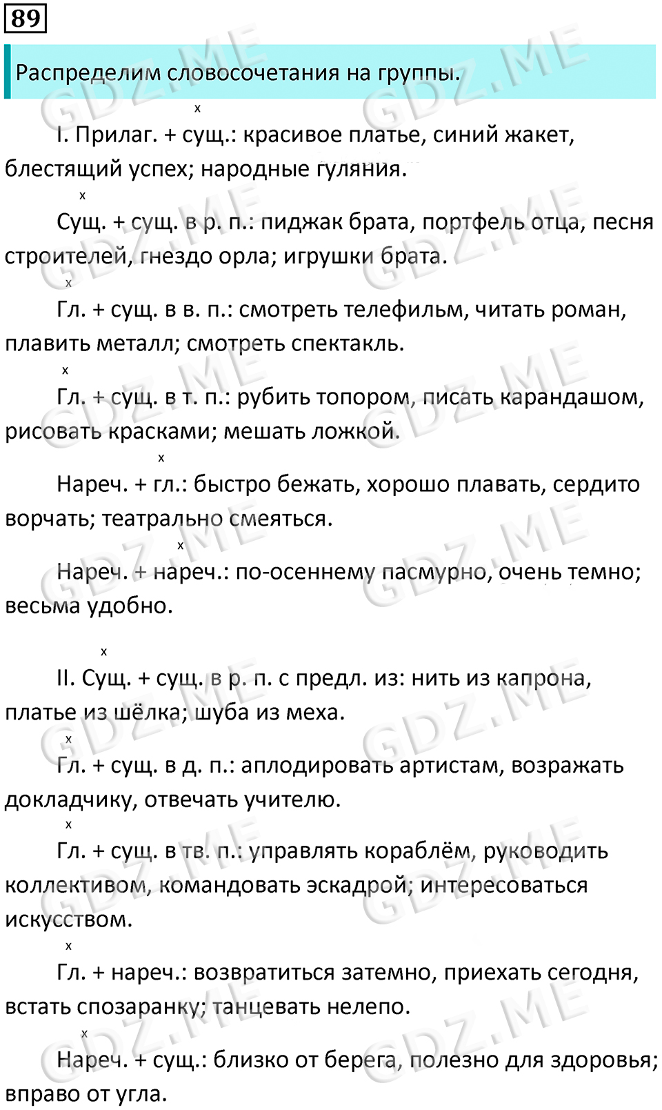 Подробный вариант решения из решебника (ГДЗ): Номер номер 89 (НОМЕРА РЕШЕНИЙ. Упражнения с 1 по 535) по предмету Русский язык, за 8 класс, авторы учебника Бархударов, Крючков, Максимов.