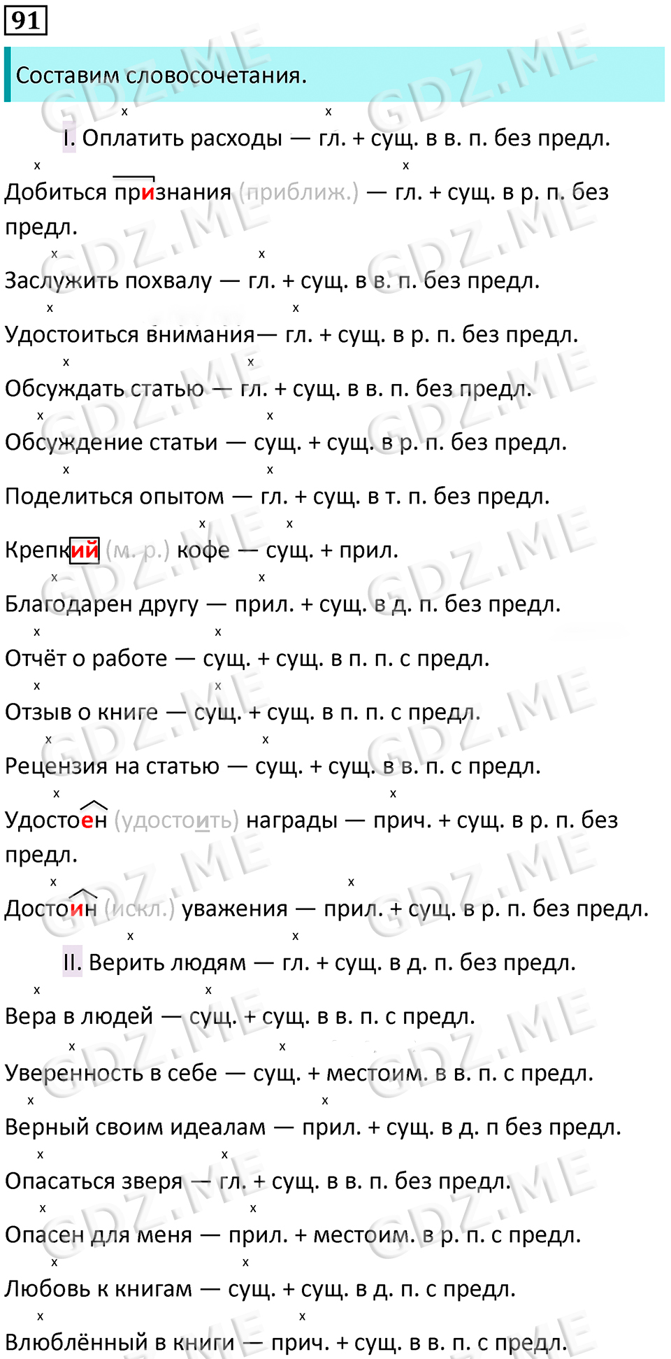 Подробный вариант решения из решебника (ГДЗ): Номер номер 91 (НОМЕРА РЕШЕНИЙ. Упражнения с 1 по 535) по предмету Русский язык, за 8 класс, авторы учебника Бархударов, Крючков, Максимов.