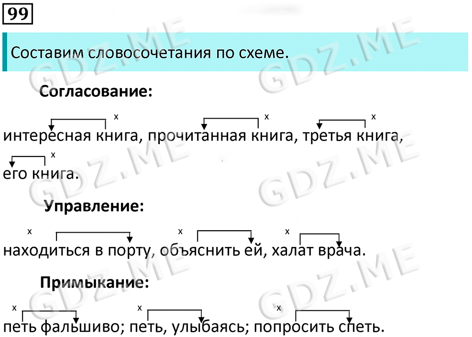 Подробный вариант решения из решебника (ГДЗ): Номер номер 99 (НОМЕРА РЕШЕНИЙ. Упражнения с 1 по 535) по предмету Русский язык, за 8 класс, авторы учебника Бархударов, Крючков, Максимов.
