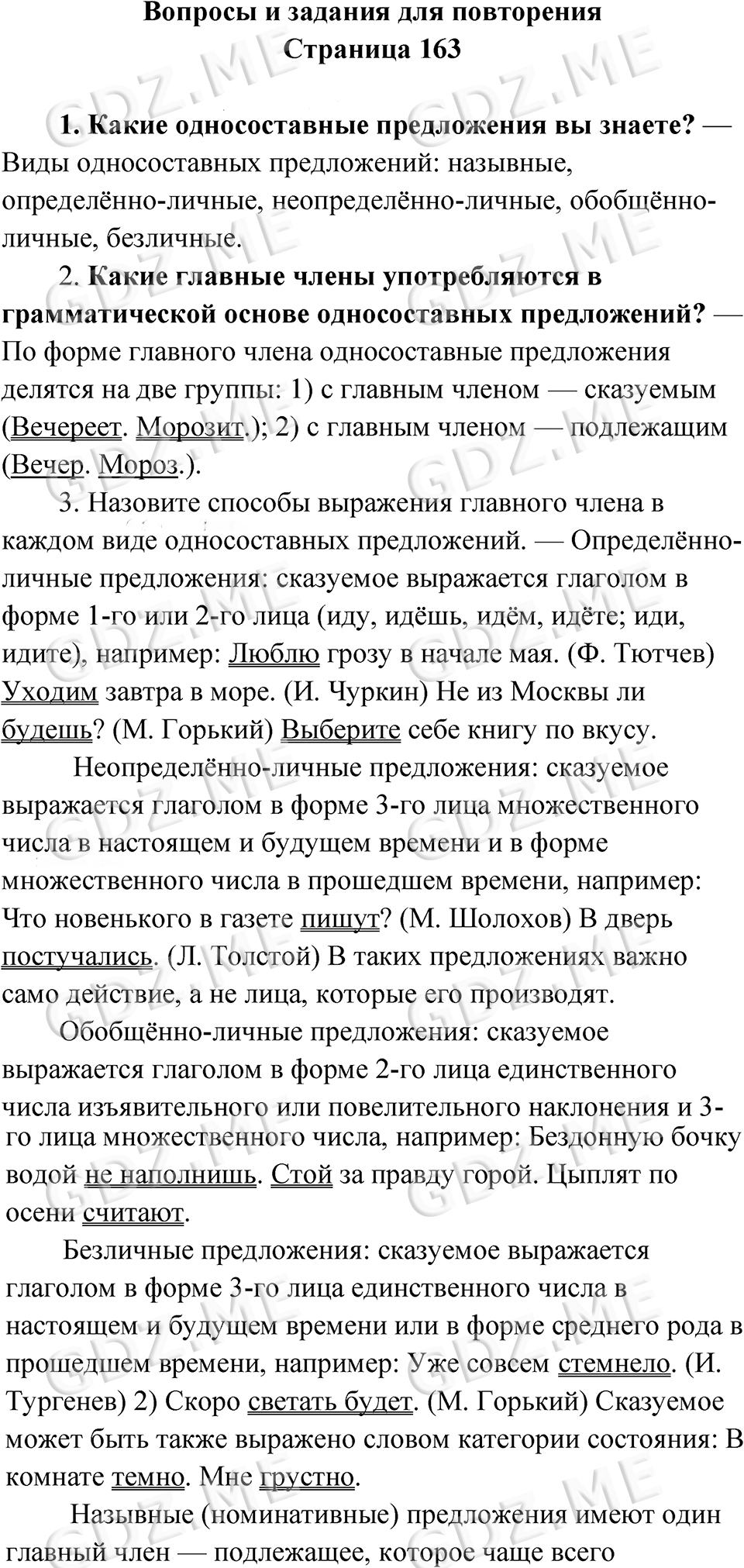 Подробный вариант решения из решебника (ГДЗ): Номер номер Страница 163.1 (НОМЕРА РЕШЕНИЙ. Учебник 2023 год. Вопросы и задания для повторения) по предмету Русский язык, за 8 класс, авторы учебника Бархударов, Крючков, Максимов.