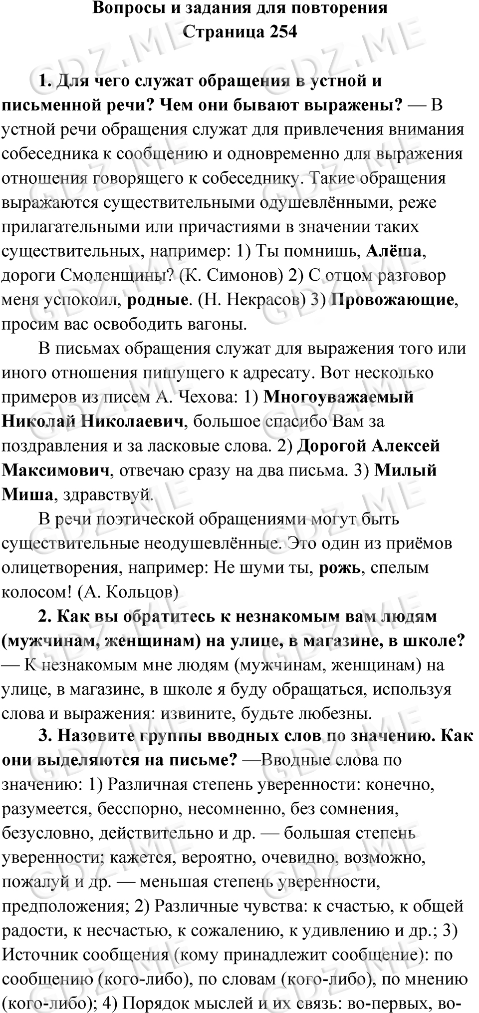 Подробный вариант решения из решебника (ГДЗ): Номер номер Страница 254.1 (НОМЕРА РЕШЕНИЙ. Учебник 2023 год. Вопросы и задания для повторения) по предмету Русский язык, за 8 класс, авторы учебника Бархударов, Крючков, Максимов.