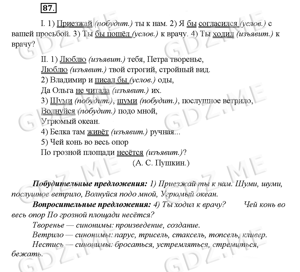 Подробный вариант решения из решебника (ГДЗ): Номер номер 87 (НОМЕРА РЕШЕНИЙ. Упражнения с 1 по 434) по предмету Русский язык, за 8 класс, авторы учебника Бархударов.