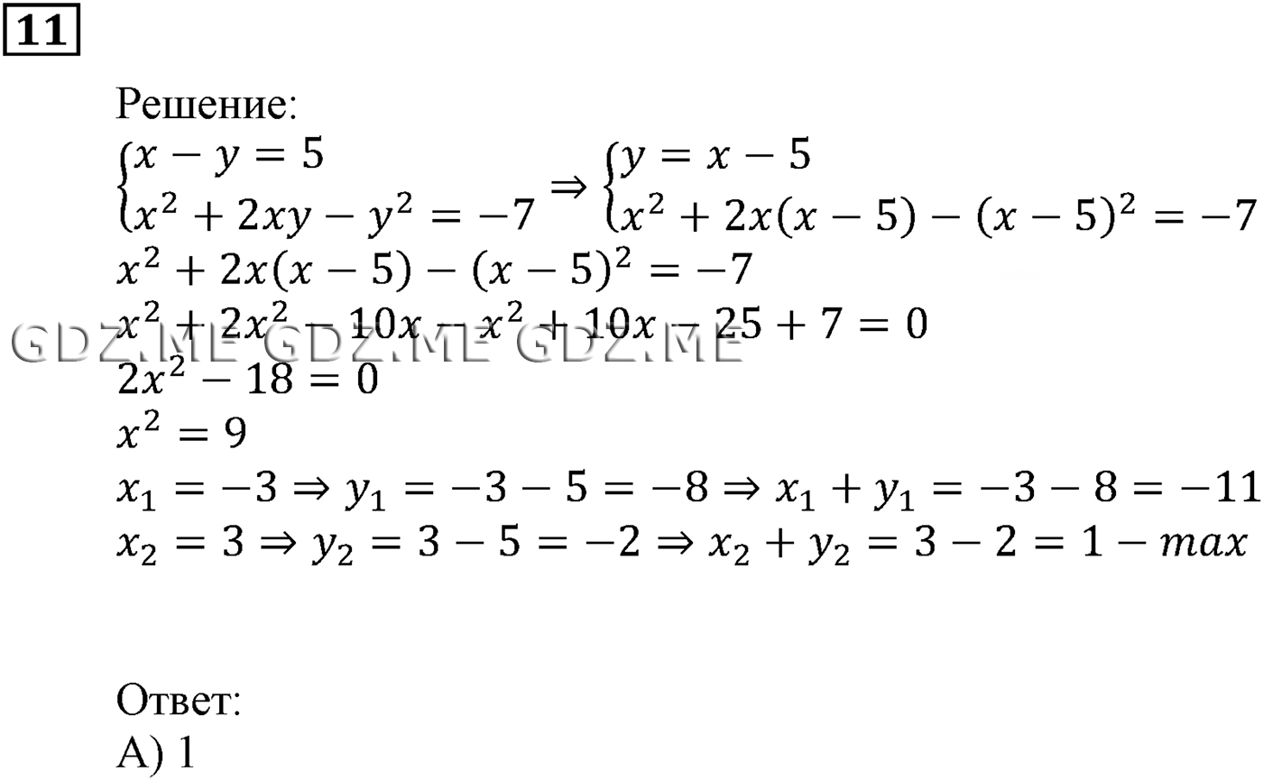 Подробный вариант решения из решебника (ГДЗ): Задание номер 11 (Глава 2 Квадратная функция. Проверь себя Параграф 13) по предмету Алгебра, за 9 класс, авторы учебника Мерзляк, Полонский, Якир.