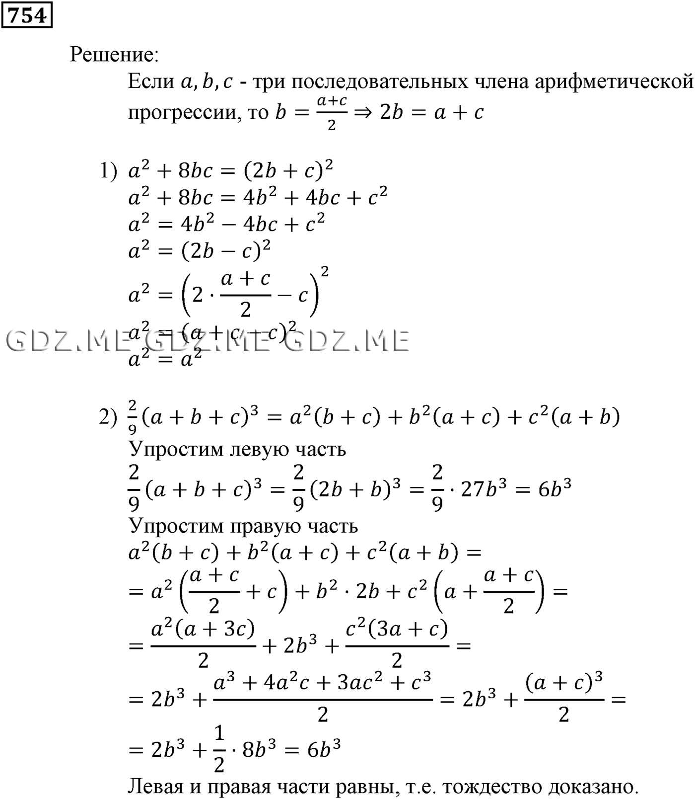 Подробный вариант решения из решебника (ГДЗ): Задание номер 754 (Глава 4 Числовые последовательности) по предмету Алгебра, за 9 класс, авторы учебника Мерзляк, Полонский, Якир.