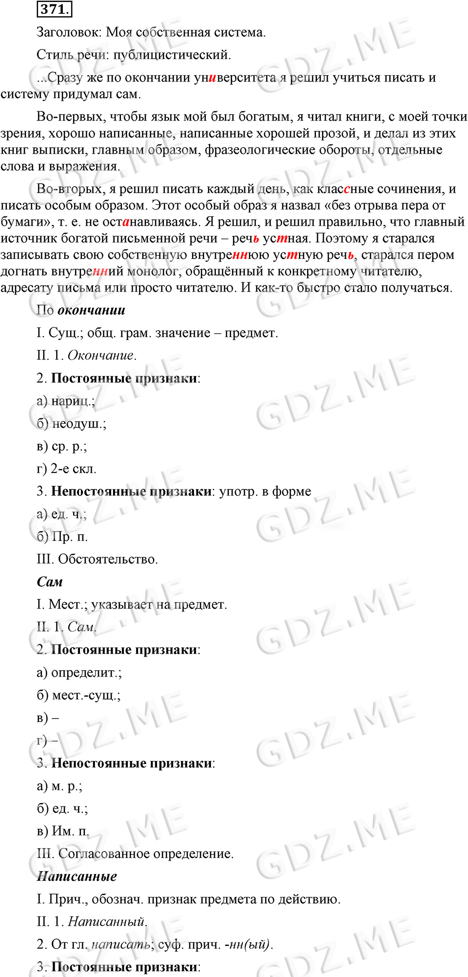 Подробный вариант решения из решебника (ГДЗ): Номер номер 371.1 (НОМЕРА РЕШЕНИЙ) по предмету Русский язык, за 9 класс, авторы учебника Бархударов.