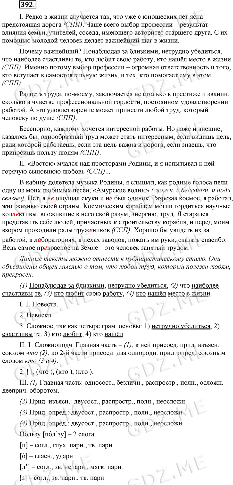 Подробный вариант решения из решебника (ГДЗ): Номер номер 392.1 (НОМЕРА РЕШЕНИЙ) по предмету Русский язык, за 9 класс, авторы учебника Бархударов.