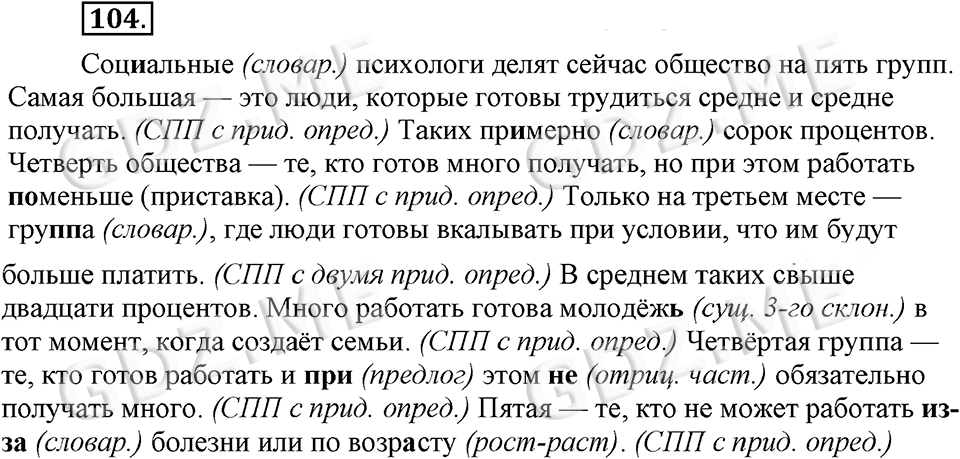 Подробный вариант решения из решебника (ГДЗ): Номер номер 104 (НОМЕРА РЕШЕНИЙ) по предмету Русский язык, за 9 класс, авторы учебника Бархударов.