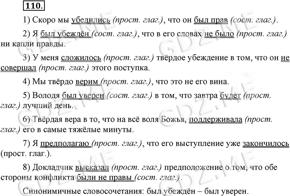 Подробный вариант решения из решебника (ГДЗ): Номер номер 110 (НОМЕРА РЕШЕНИЙ) по предмету Русский язык, за 9 класс, авторы учебника Бархударов.