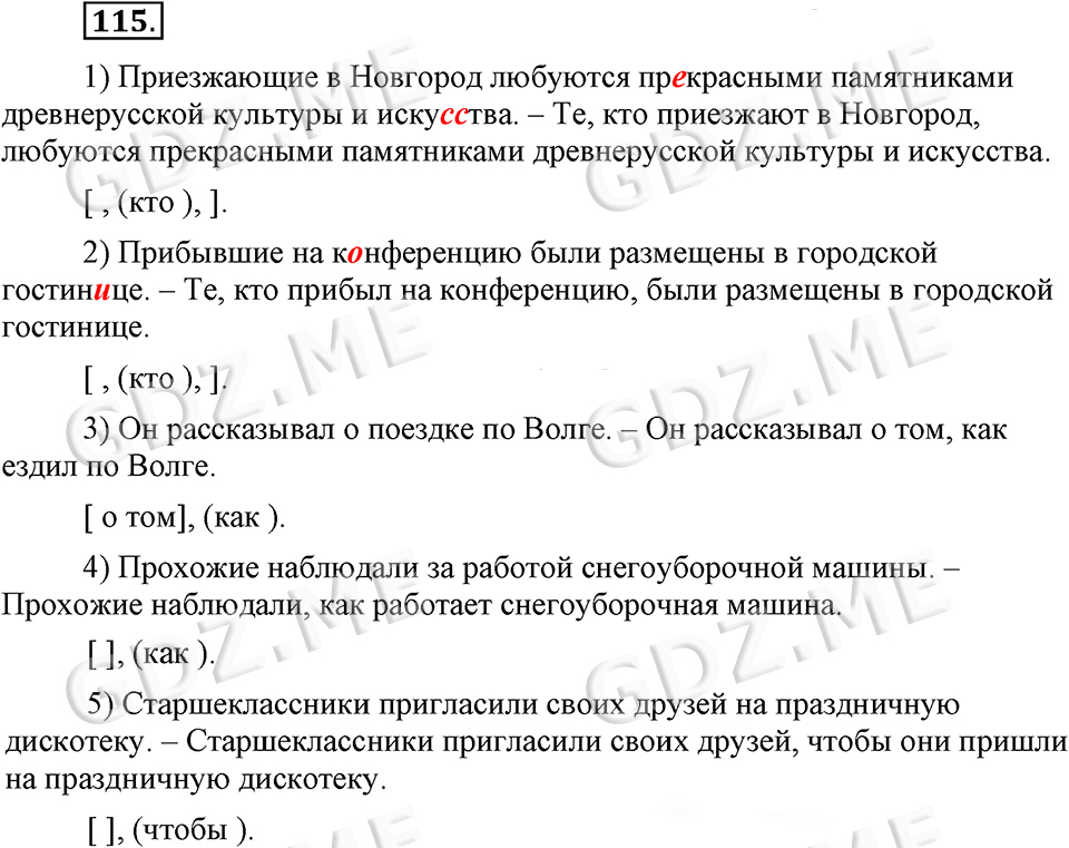 Подробный вариант решения из решебника (ГДЗ): Номер номер 115 (НОМЕРА РЕШЕНИЙ) по предмету Русский язык, за 9 класс, авторы учебника Бархударов.