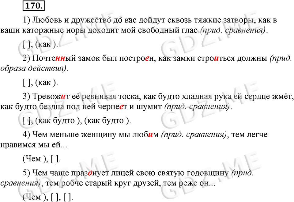 Подробный вариант решения из решебника (ГДЗ): Номер номер 170 (НОМЕРА РЕШЕНИЙ) по предмету Русский язык, за 9 класс, авторы учебника Бархударов.