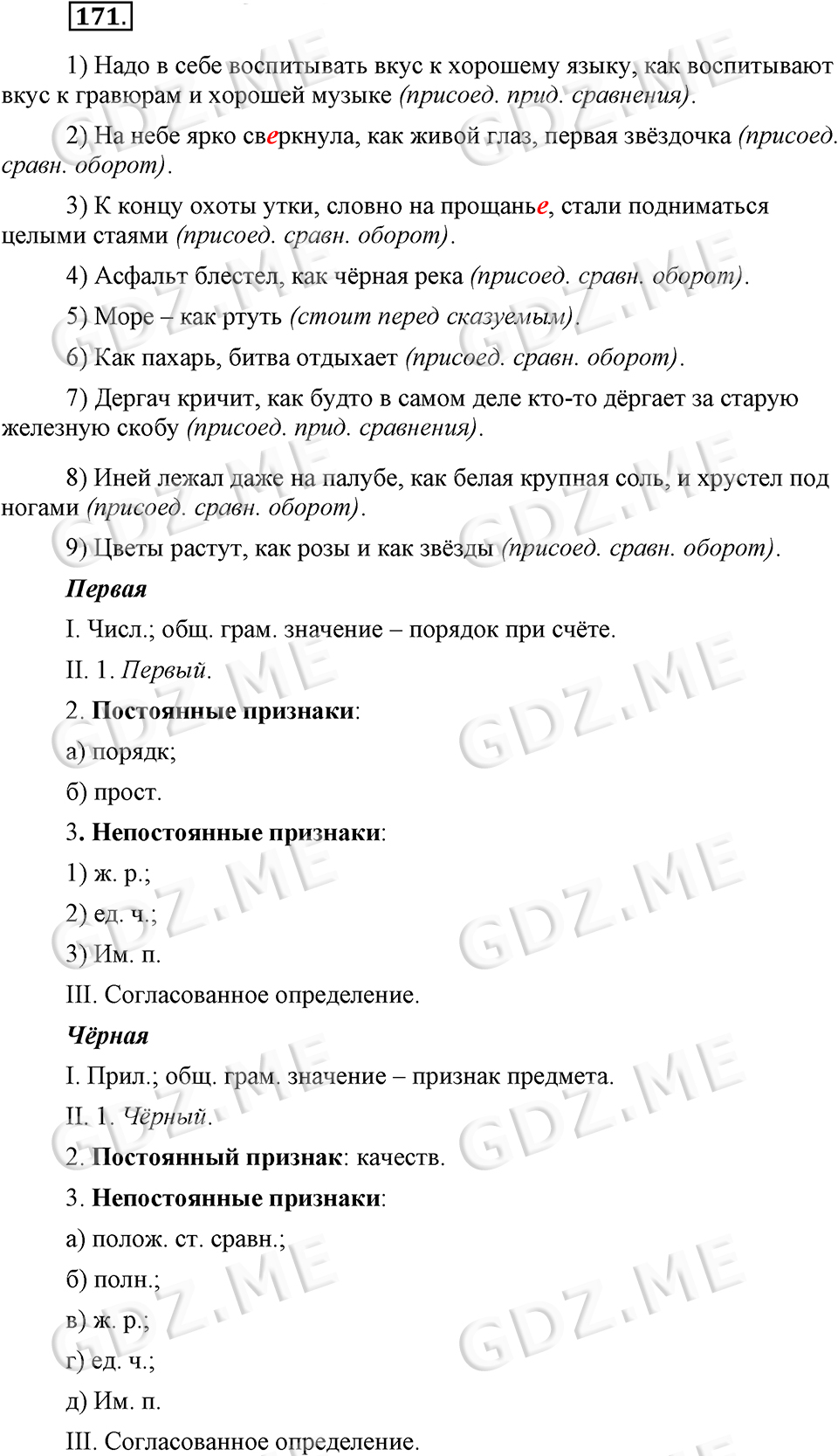 Подробный вариант решения из решебника (ГДЗ): Номер номер 171 (НОМЕРА РЕШЕНИЙ) по предмету Русский язык, за 9 класс, авторы учебника Бархударов.