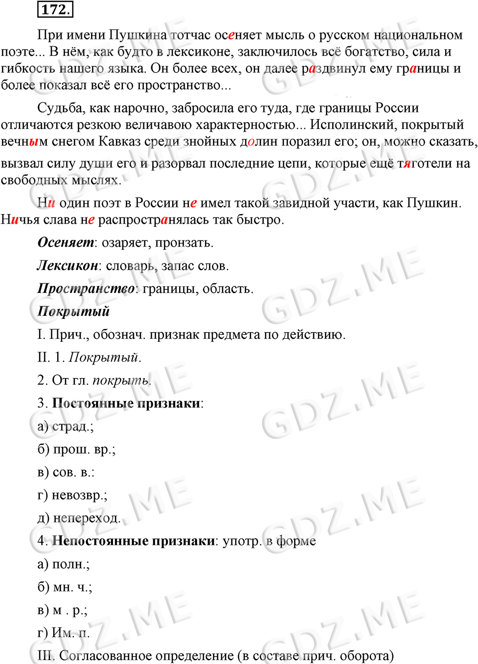 Подробный вариант решения из решебника (ГДЗ): Номер номер 172 (НОМЕРА РЕШЕНИЙ) по предмету Русский язык, за 9 класс, авторы учебника Бархударов.