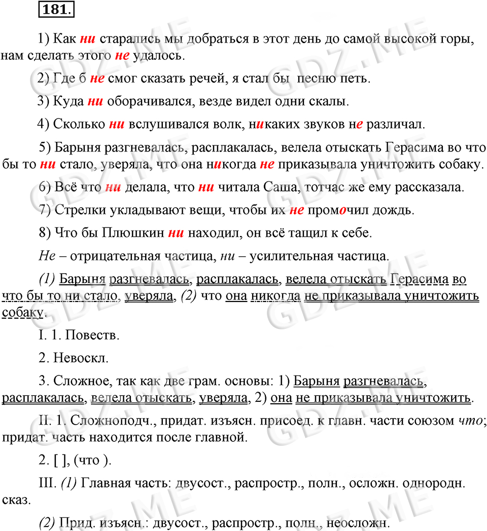 Подробный вариант решения из решебника (ГДЗ): Номер номер 181 (НОМЕРА РЕШЕНИЙ) по предмету Русский язык, за 9 класс, авторы учебника Бархударов.