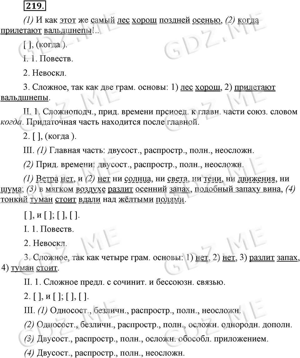 Подробный вариант решения из решебника (ГДЗ): Номер номер 219 (НОМЕРА РЕШЕНИЙ) по предмету Русский язык, за 9 класс, авторы учебника Бархударов.