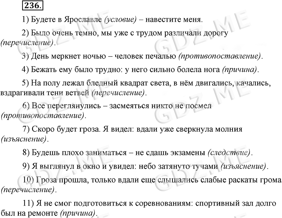 Подробный вариант решения из решебника (ГДЗ): Номер номер 236 (НОМЕРА РЕШЕНИЙ) по предмету Русский язык, за 9 класс, авторы учебника Бархударов.