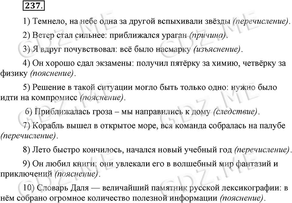 Подробный вариант решения из решебника (ГДЗ): Номер номер 237 (НОМЕРА РЕШЕНИЙ) по предмету Русский язык, за 9 класс, авторы учебника Бархударов.