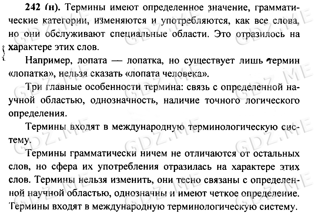 Подробный вариант решения из решебника (ГДЗ): Номер номер 242 (НОМЕРА РЕШЕНИЙ) по предмету Русский язык, за 9 класс, авторы учебника Бархударов.