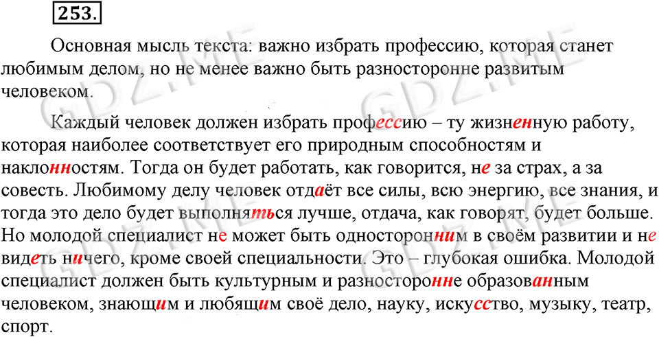 Подробный вариант решения из решебника (ГДЗ): Номер номер 253 (НОМЕРА РЕШЕНИЙ) по предмету Русский язык, за 9 класс, авторы учебника Бархударов.