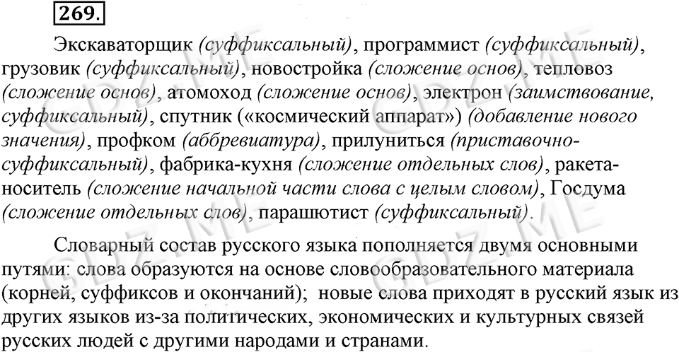 Подробный вариант решения из решебника (ГДЗ): Номер номер 269 (НОМЕРА РЕШЕНИЙ) по предмету Русский язык, за 9 класс, авторы учебника Бархударов.