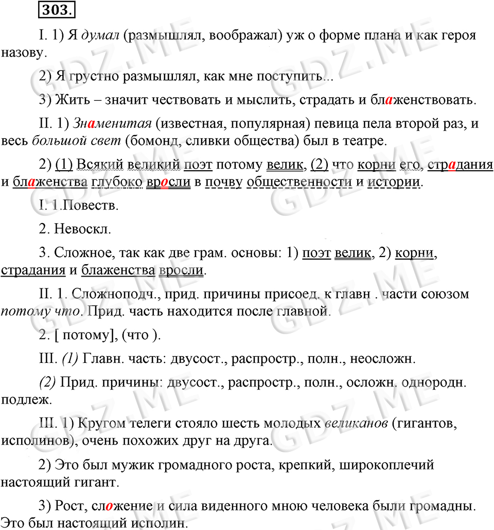 Подробный вариант решения из решебника (ГДЗ): Номер номер 303 (НОМЕРА РЕШЕНИЙ) по предмету Русский язык, за 9 класс, авторы учебника Бархударов.