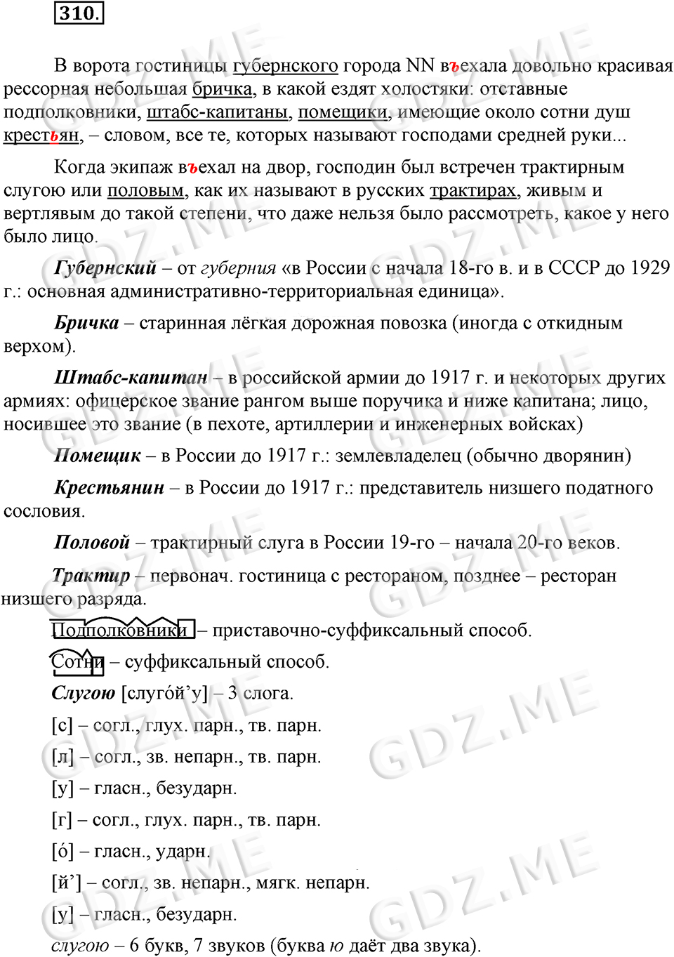 Подробный вариант решения из решебника (ГДЗ): Номер номер 310 (НОМЕРА РЕШЕНИЙ) по предмету Русский язык, за 9 класс, авторы учебника Бархударов.