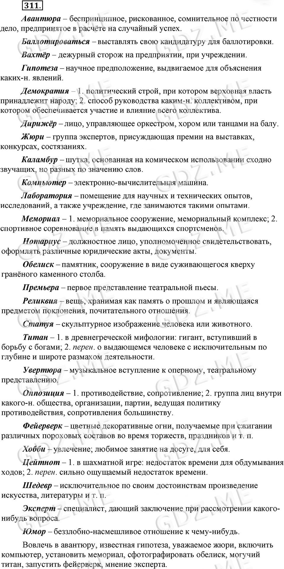 Подробный вариант решения из решебника (ГДЗ): Номер номер 311 (НОМЕРА РЕШЕНИЙ) по предмету Русский язык, за 9 класс, авторы учебника Бархударов.