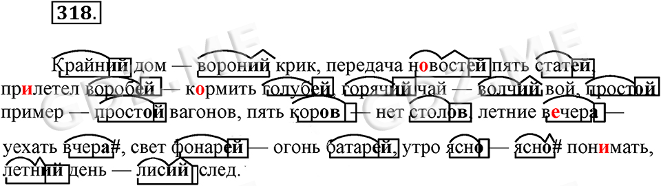 Подробный вариант решения из решебника (ГДЗ): Номер номер 318 (НОМЕРА РЕШЕНИЙ) по предмету Русский язык, за 9 класс, авторы учебника Бархударов.