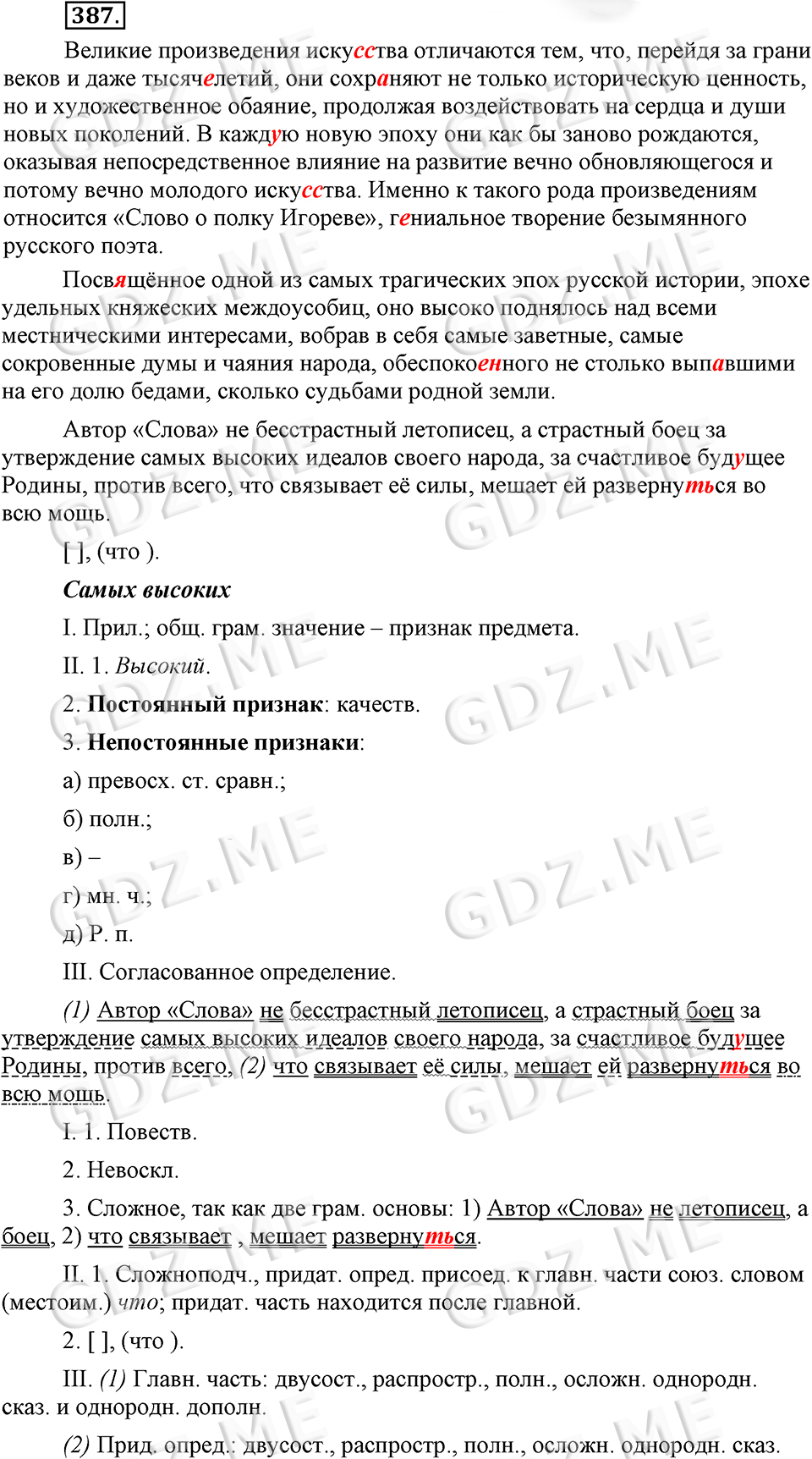 Подробный вариант решения из решебника (ГДЗ): Номер номер 387 (НОМЕРА РЕШЕНИЙ) по предмету Русский язык, за 9 класс, авторы учебника Бархударов.
