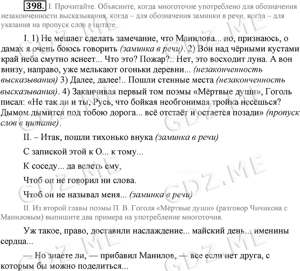 Подробный вариант решения из решебника (ГДЗ): Номер номер 398 (НОМЕРА РЕШЕНИЙ) по предмету Русский язык, за 9 класс, авторы учебника Бархударов.